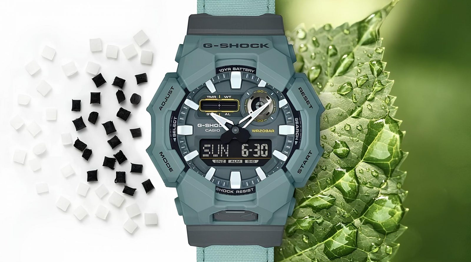 Корпусы и безели часов изготовлены из биопластика, что способствует снижению углеродного следа производства.