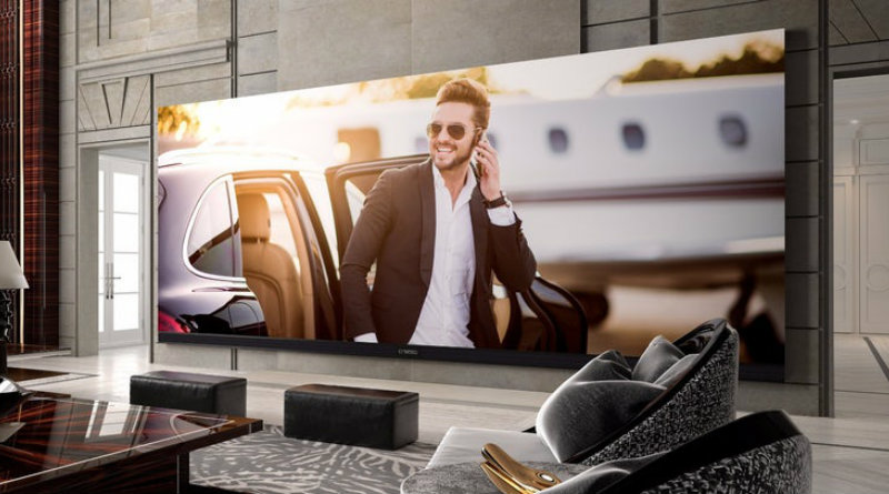 77-дюймовый экран обладает разрешением 3840×2160 пикселей (4K) и светопроницаемостью 40%