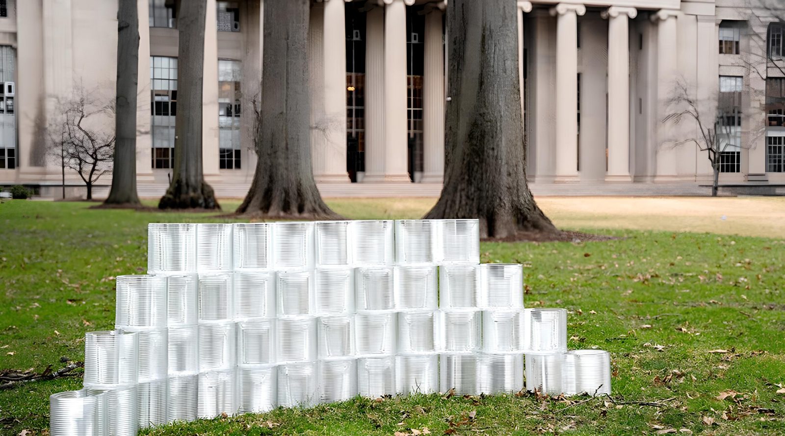 Кирпичи имеют форму «восьмерки» и оснащены штифтами для сцепления, что позволяет использовать их в изогнутых строительных проектах.