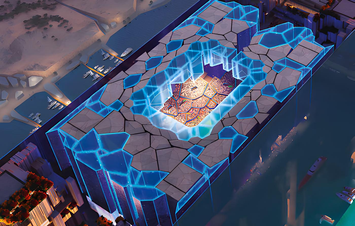 Уникальный стадион будет располагаться на высоте более 350 м под крышей из зеркальных фрагментов.