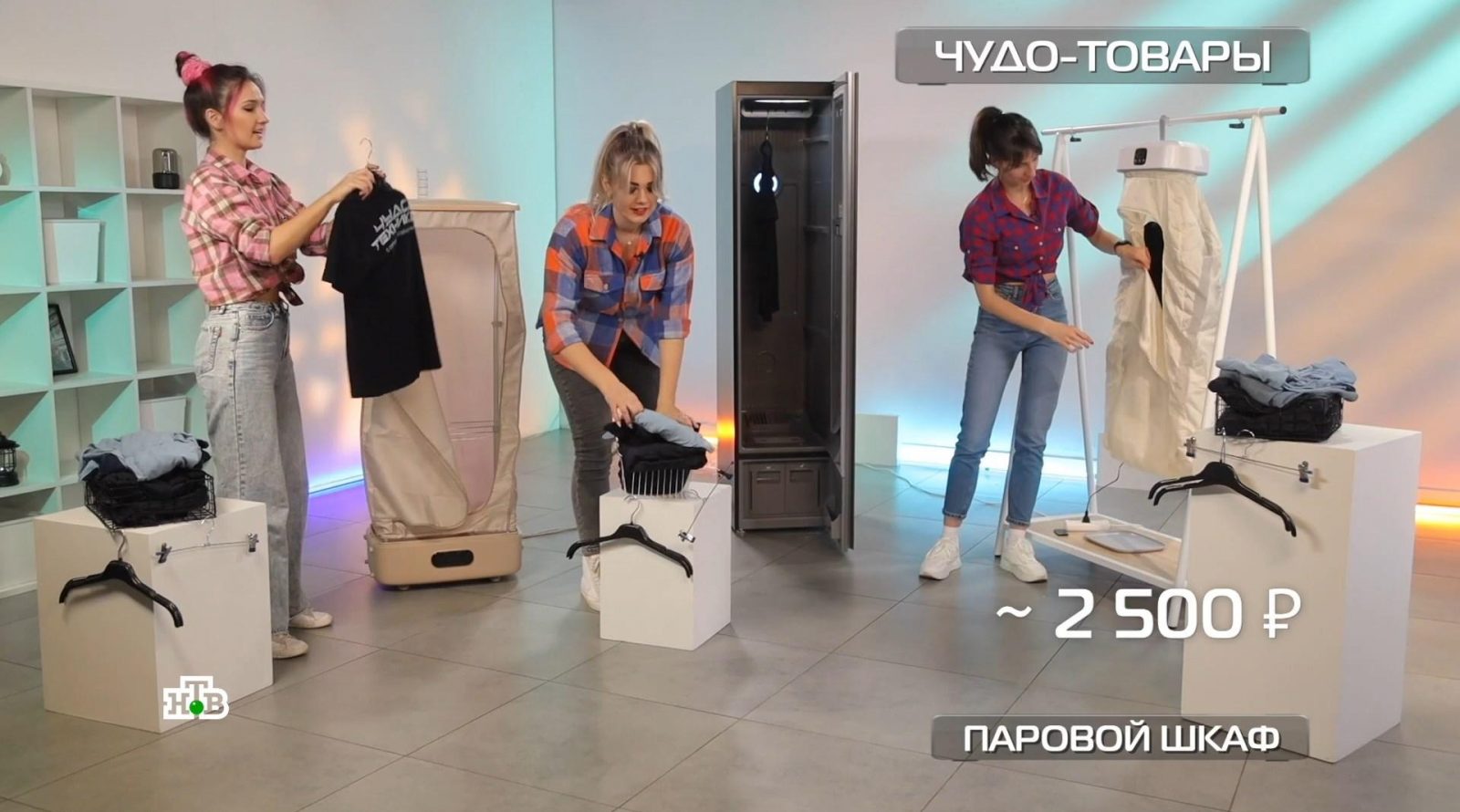 Как говорит реклама, в нём парогенератор устраняет запахи и разглаживает. А вентилятор с нагревательным элементом ускоряет сушку.