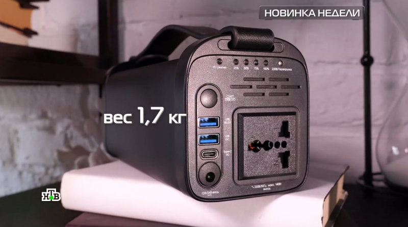 Устройство оснащено быстрой зарядкой, ярким фонариком и встроенной розеткой на 220 вольт.