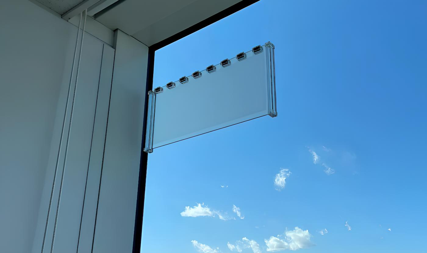 Антенна выполнена из прозрачного проводящего материала, который размещён между 2 стеклянными пластинами.