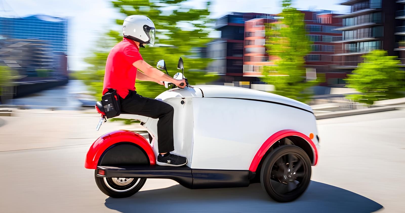 Скутер обладает запасом хода в 100 км и грузоподъёмностью до 200 кг.