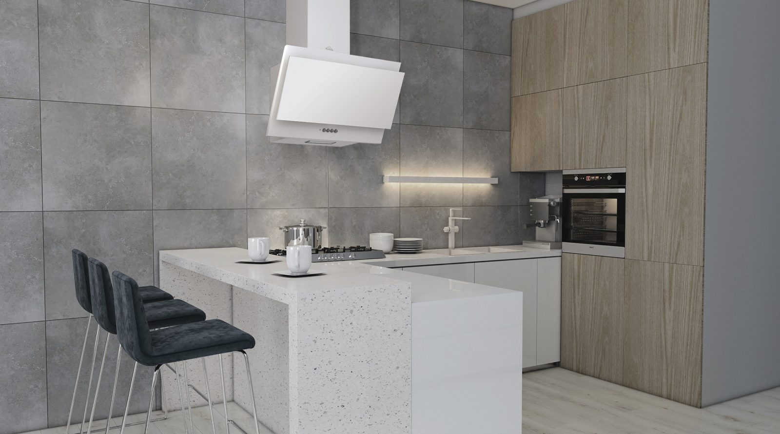 Новинку оснастили вентилятором с регулировкой скорости, благодаря этому она создаёт сильное давление и эффективно удаляет дым и запахи.