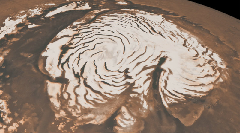 Снимок сделан весной. В это время в северном полушарии Марса начинают раскалываться льды.