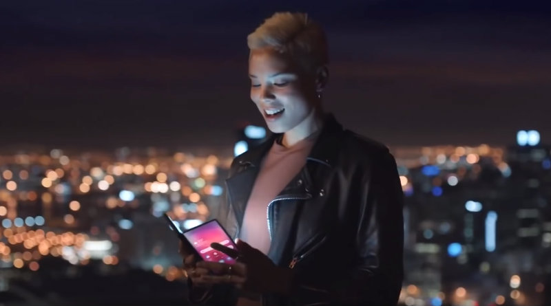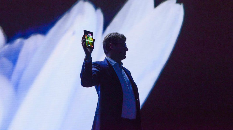 Со сцены был продемонстрирован первый раскладывающийся смартфон компании с гибким экраном.