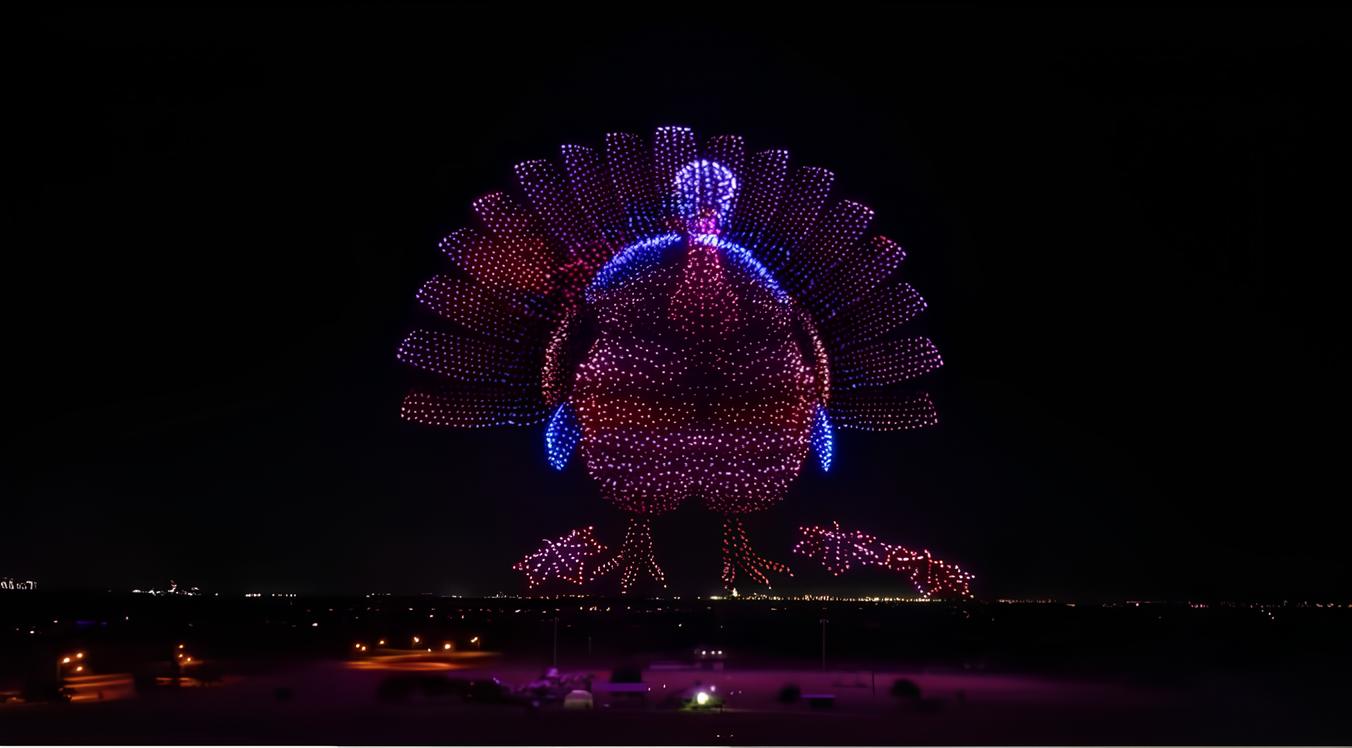 Почти 5 000 беспилотников поднялись в небо, чтобы создать впечатляющее изображение на праздничную тематику.