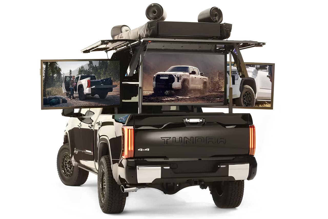 Концепт Tundra выделяется задней частью кузова с электроприводами, которые трансформируются в мини-сцену с пятью 55-дюймовыми экранами.