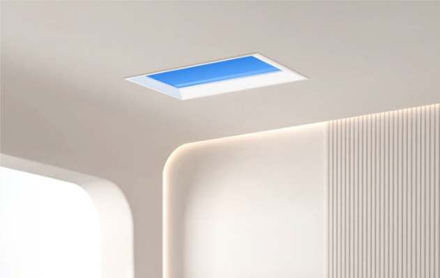 Он оснащён кольцевым освещением и имитирует голубое небо после дождя.