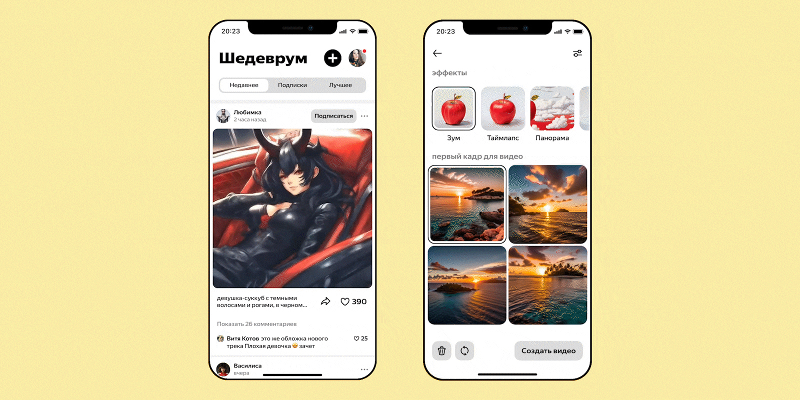 Сгенерированными роликами можно поделиться с друзьями или сохранить в память устройства.
